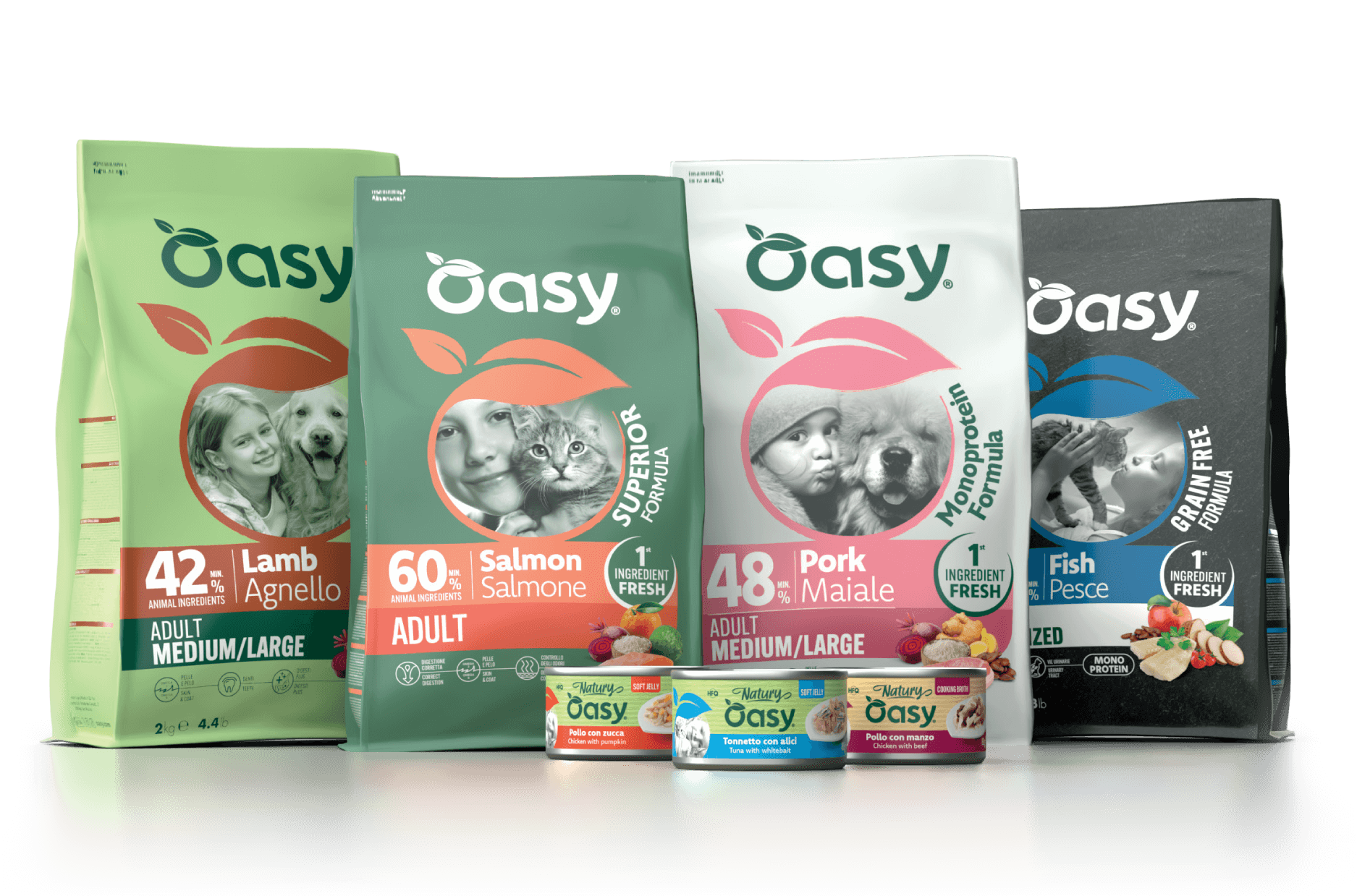 Con Oasy ti prendi cura del benessere del tuo cane e del tuo gatto: ogni alimento contiene tanta carne e ingredienti naturali selezionati con cura per offrire la massima digeribilità, il giusto apporto di nutrienti e tanto gusto.
